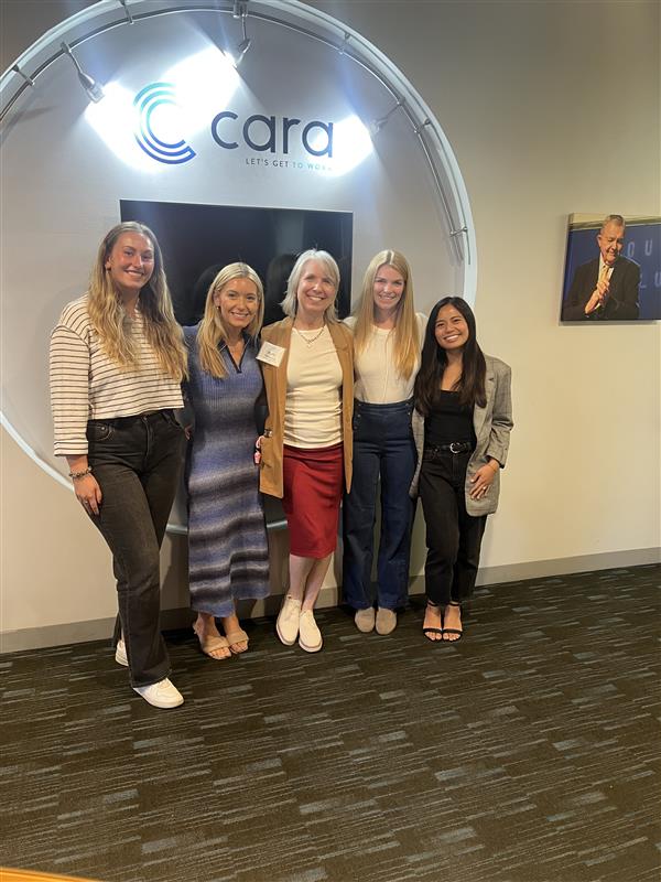 September 2025: Eight Eleven Group employees Sophie Brady, Nicole Stinson (Pfeiffer), Bridget Tuckey, and Janisa Bondoc join Kelly Brouwer (Cara Collective) for “Morning Motivations,” where participants share news of secured interviews or jobs and deliver motivational talks.