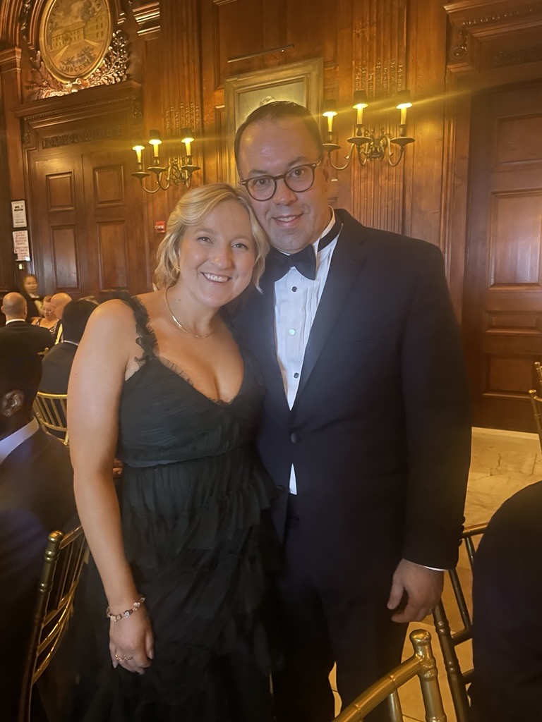 2024: Erica Turco and Colin Gerner pose together at a fundraising event for StacheStrong.