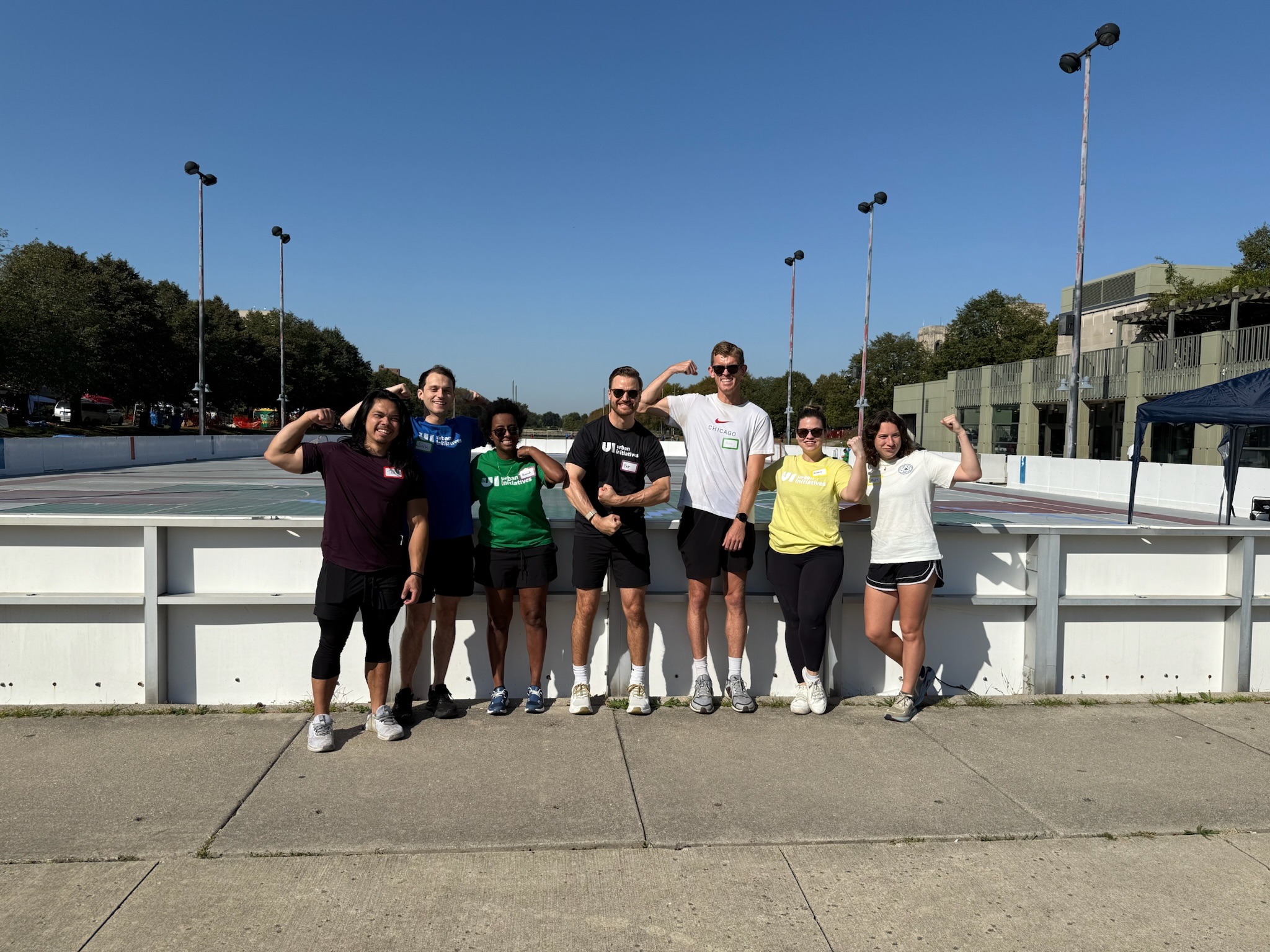August 2025: Maggie Piazzi (far right) poses with other board members of Urban Initiatives in front of the organization’s sports fields.